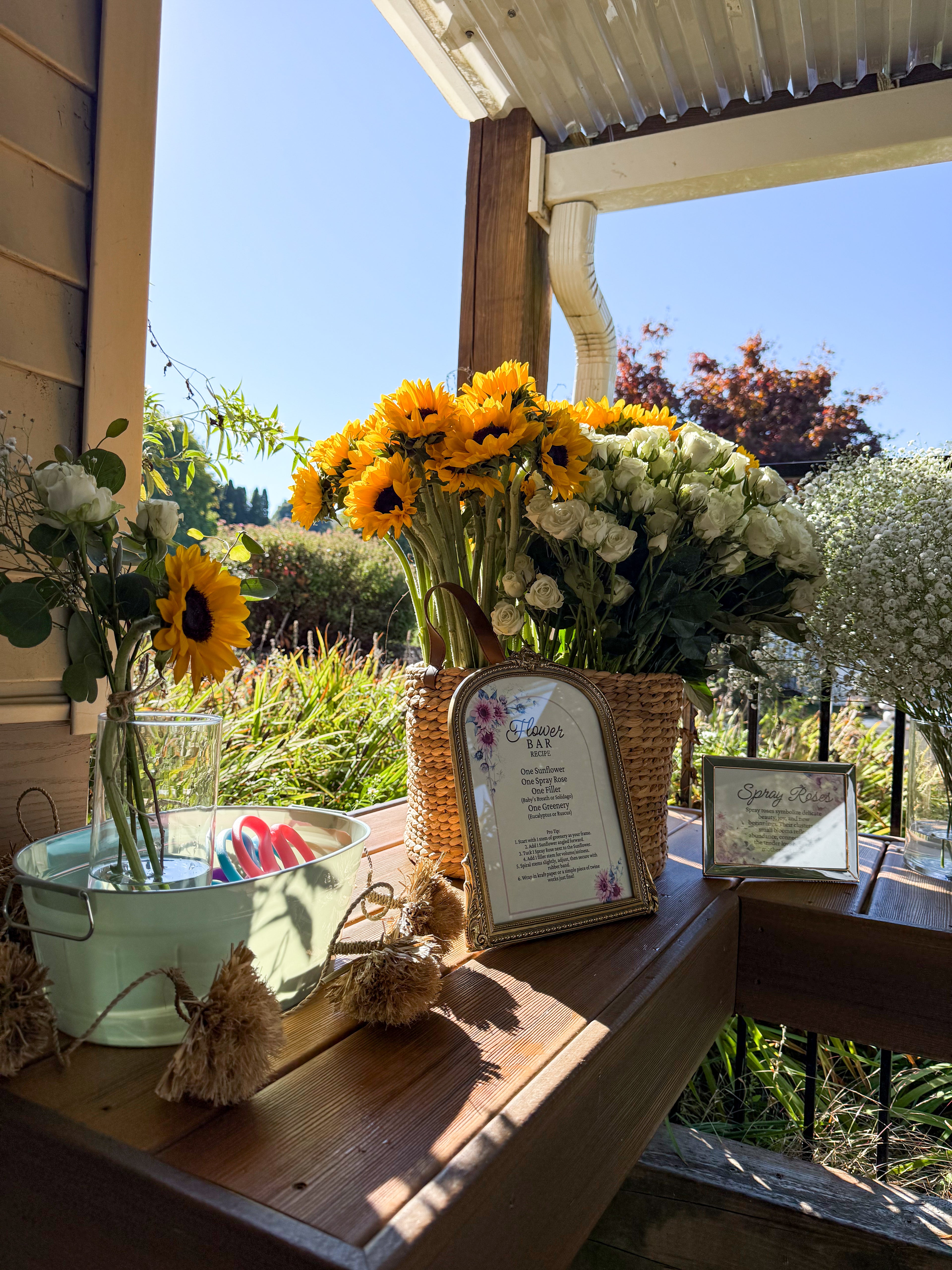 Each flower bar is designed to complement your theme—from rustic farm tables to polished corporate displays.